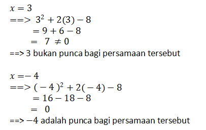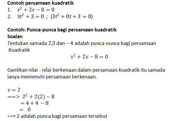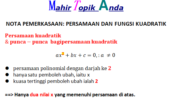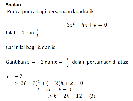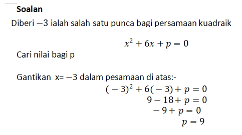Perhatian : Jika dinyatakan bahawa punca - punca bagi persamaan kuadratik adalah